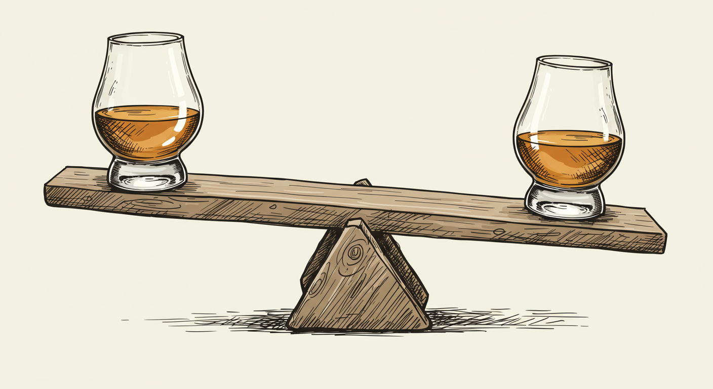 The contrast effect is a type of cognitive bias whereby our perception of an item is strongly influenced by comparisons to what we recently experienced. In simple terms, we often judge things not in isolation, but relative to what came before. A wine that tastes mediocre on its own may seem extraordinary if it follows a particularly bland sample. Conversely, a chocolate may taste exceptionally sweet it follows a rich, intense dark chocolate. But also, a 50% abv whisky may appear gentle if it follows a 61% abv dram.